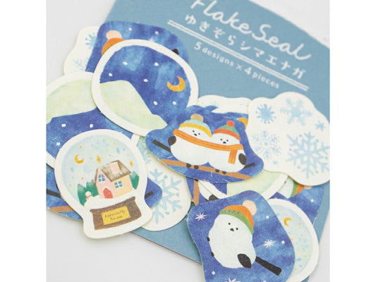 売り切れ和紙フレークシール ゆきぞらシマエナガ