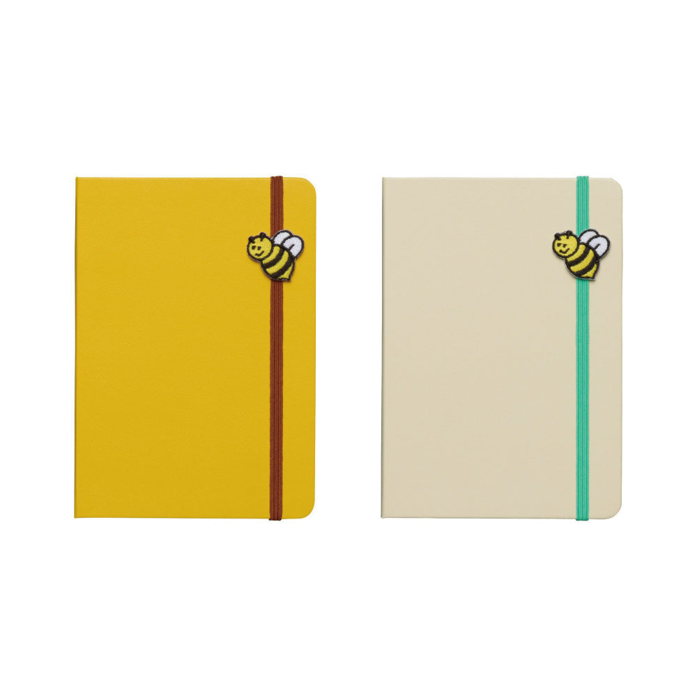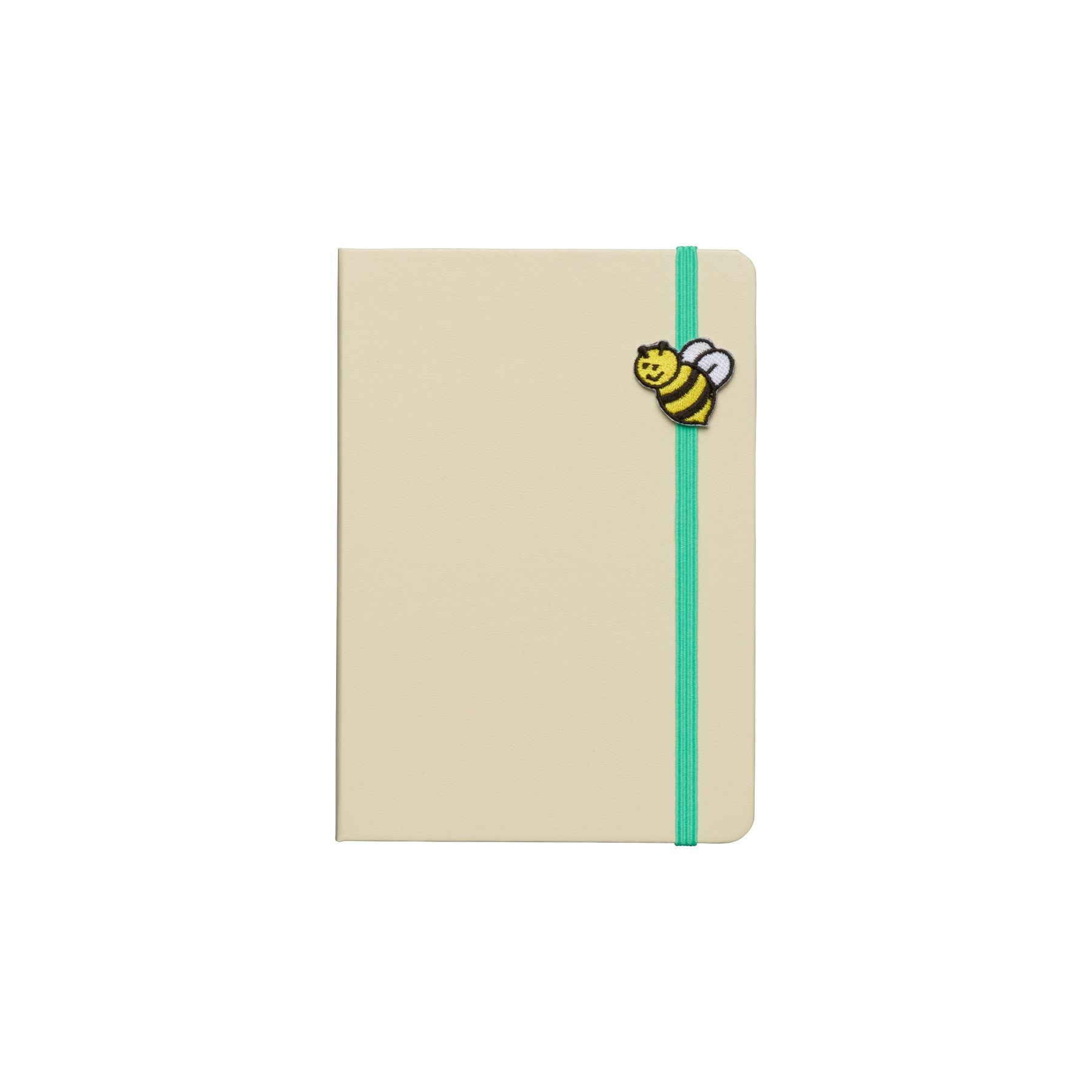 幸運のモチーフであるミツバチの刺繍チャームが目を引くゴムバンド付きダイアリーです。