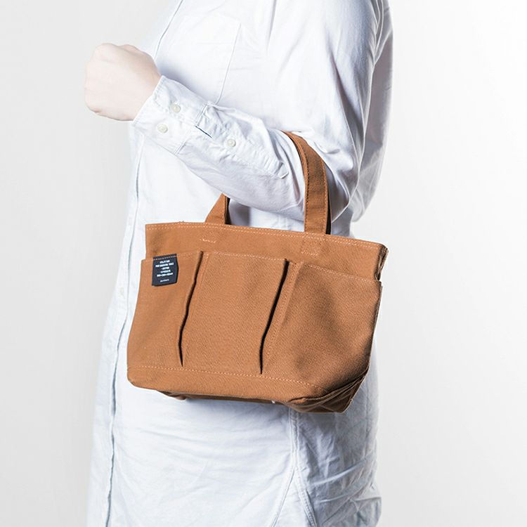 見た目も可愛らしいSサイズは、マチ付きでA5が収納できるほどの大きさで、ランチ等のちょっとした外出にもおすすめ。別売りのストラップを付けて、手持ち、ショルダーの2WAYでも使えます。
