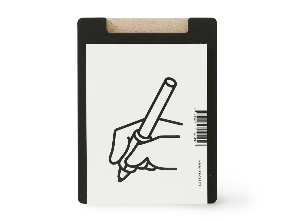 メモボードは、HMMのパッケージによく使われているグレーの厚紙で作られており、層を重ねることでしっかりとした強度を誇ります。表面は黒い厚紙で覆われ、書きやすさをサポート。メモやノートの記入がスムーズに行えます。