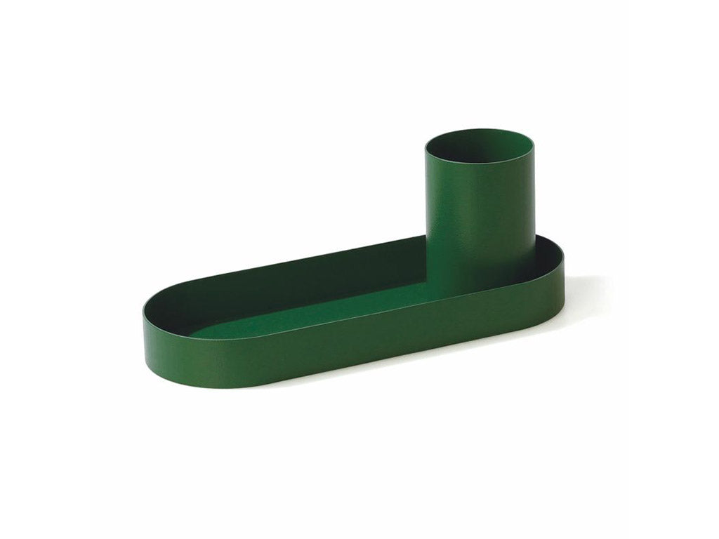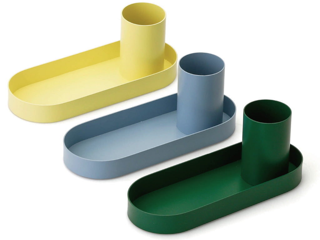 ペンが見やすい低めのペンスタンドと、クリップや付箋などの文房具を収納できるトレイが一体となっており持ち運びも簡単。
