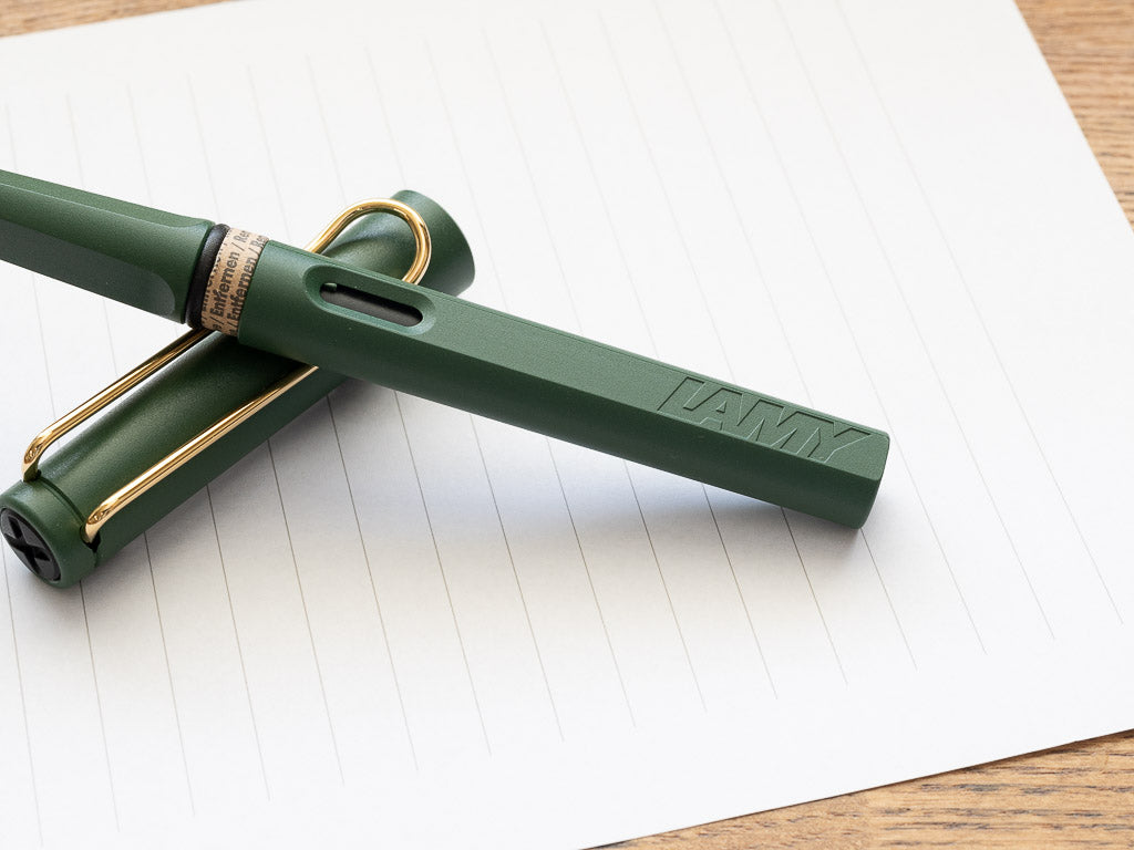 「ラミー サファリ フィールドグリーン ゴールドクリップ」は、みずみずしい野原を思わせるフィールドグリーンのマットボディに、輝くゴールドクリップの質感がアクセント。