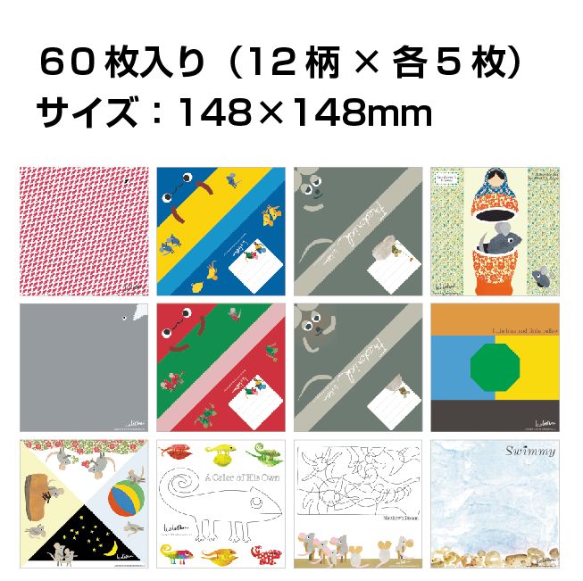 ぬり絵おりがみは、絵本の場面を再現できるようなぬり絵になっています。 レオニの人気絵本から、 「スイミー」「フレデリック」「アレクサンダとぜんまいねずみ」「マシューのゆめ」「じぶんだけのいろ」「あおくんときいろちゃん」「いろとかずであそぼうよ」「あそぼうよ」の作品を使用しています。