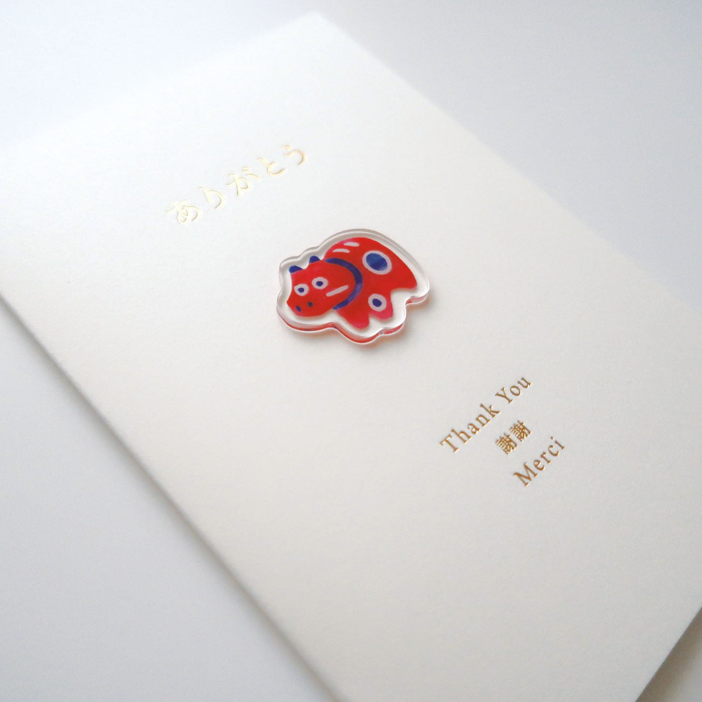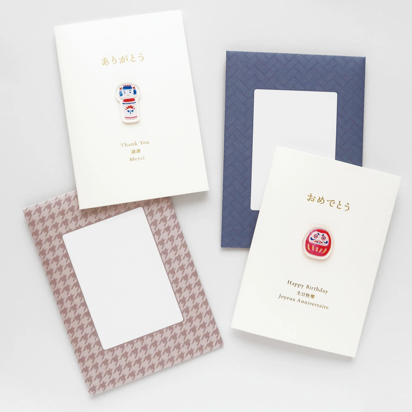 日本の代表的なモチーフや民芸品をアクリルパーツで表現したグリーティングカード。