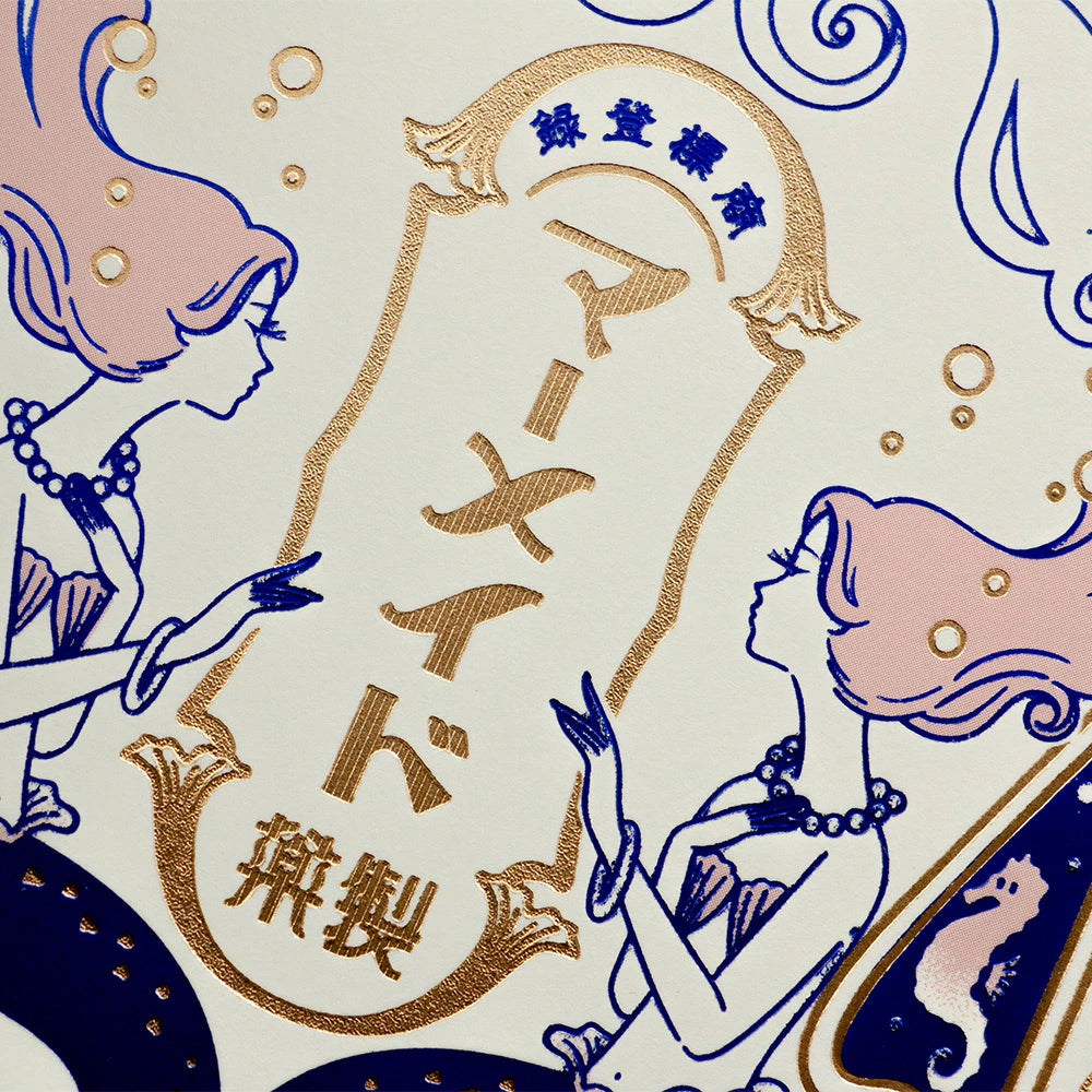 イラストレーター・ob1toy(オビワン)さんが描くイラストと、箔押しブランド「ROKKAKU(ロッカク)」のコラボレーション。
