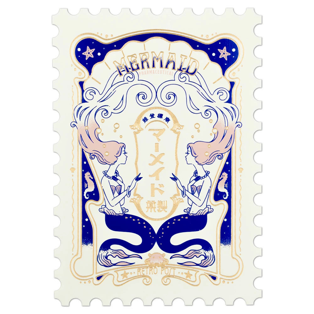 レトロでキラキラと輝く彩りが美しい、箔押しポストカードです。