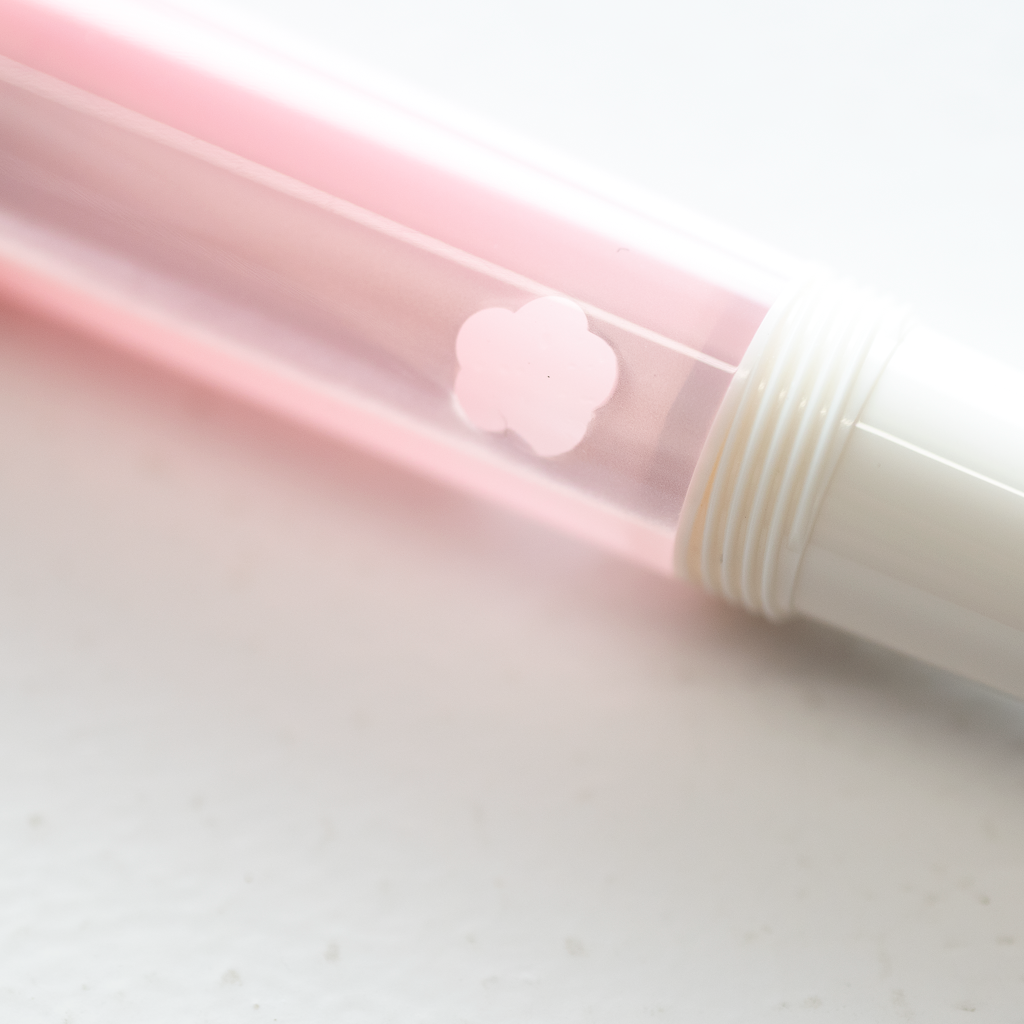 柔らかなパステルピンクのレジンと、純白のキャップが調和し、春のエッセンスを魅力的に写し出します。
