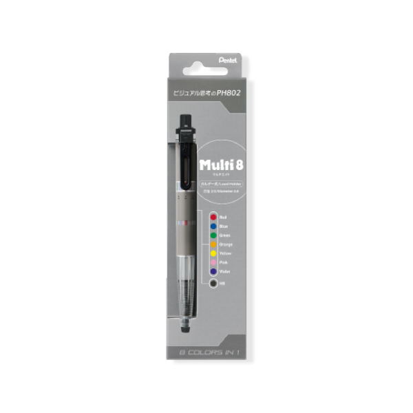 識別性の高い色芯7色(赤、青、緑、橙、黄、ピンク、紫)と、アウトラインや下描きに使える鉛筆芯(HB)を内蔵した「マルチ8(PH802)」は、アイデア・情報を絵や図などで捉えて整理をする、ビジュアル思考派におすすめ。