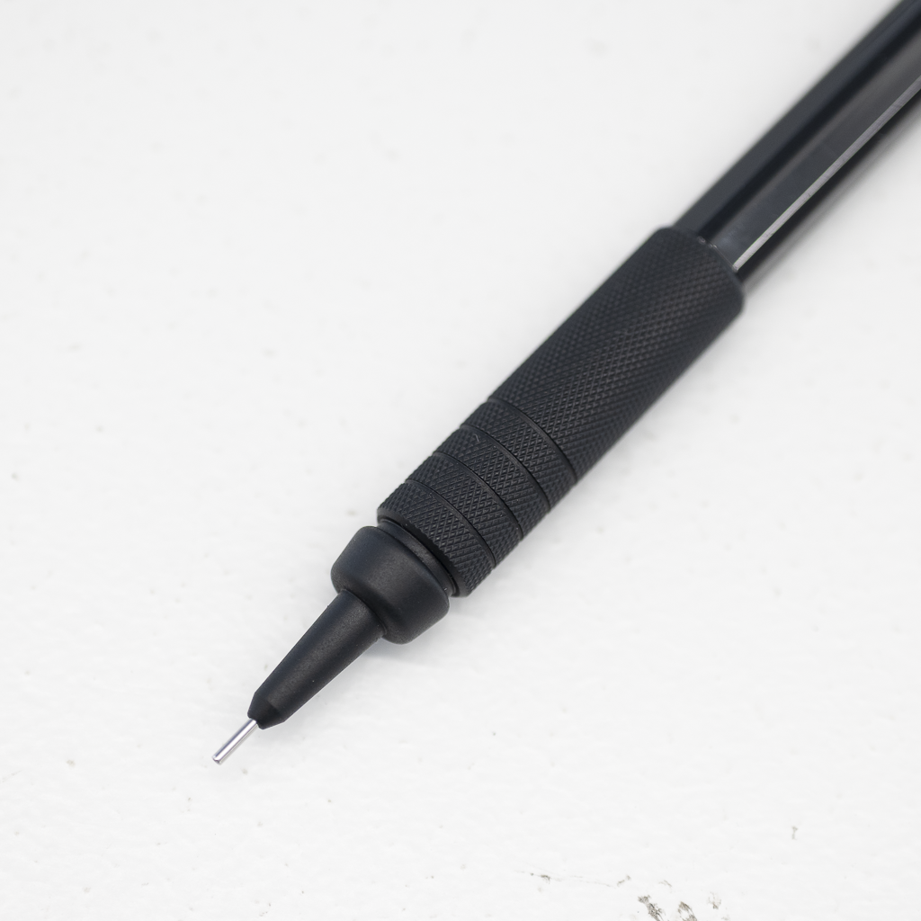 金属製のグリップには適度な重量感があり、筆記時の安定性を高めています。