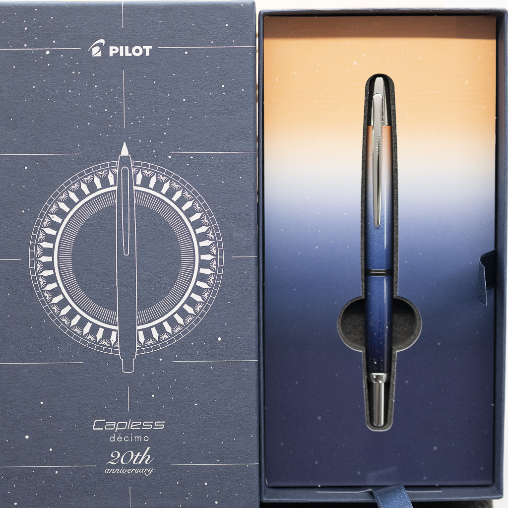 ノック式万年筆「キャップレス・デシモ」の発売20周年を記念した限定モデルが登場。
