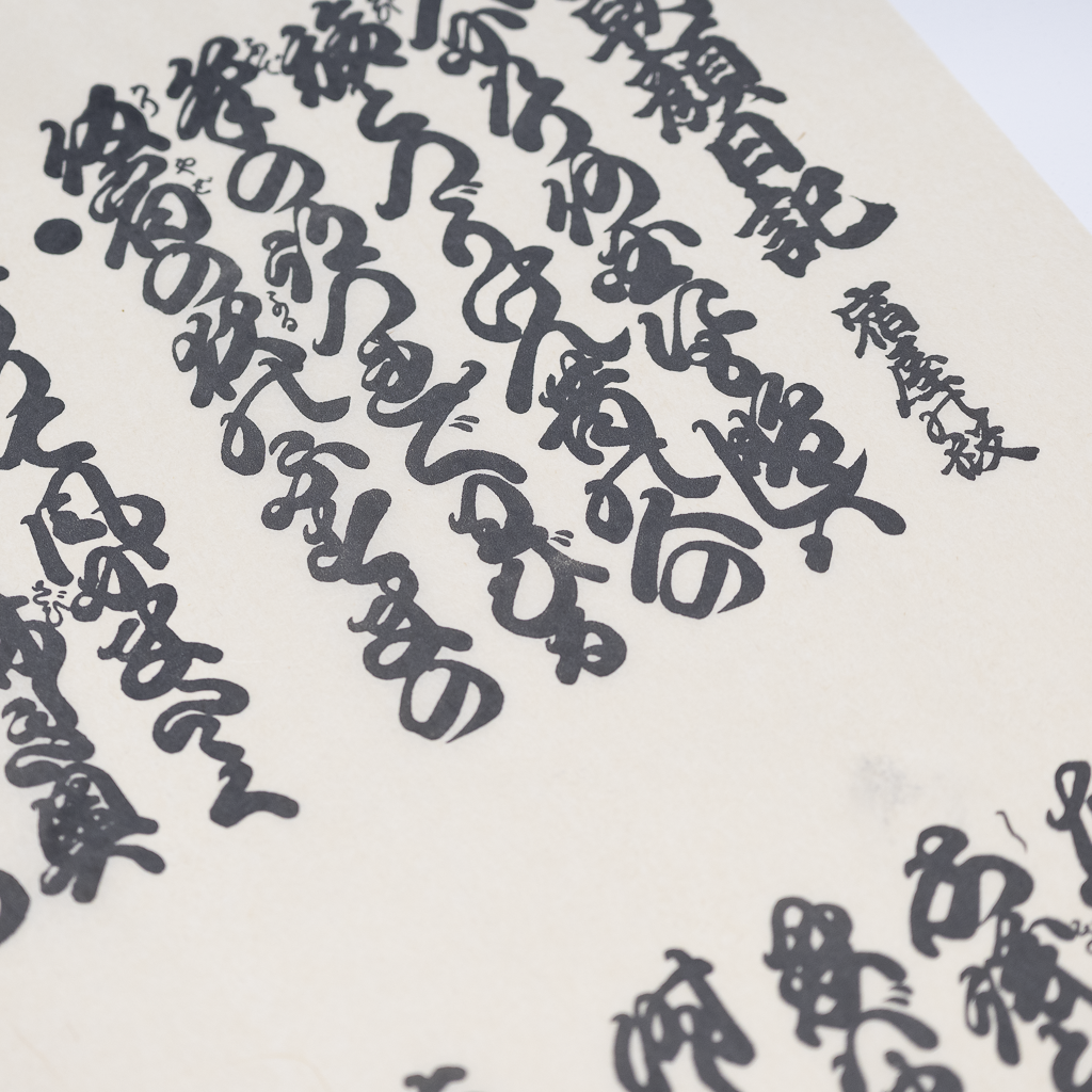 流れるように筆が走る草書をあしらい、平安時代の古典文学を思わせる優美な仕上がりです。