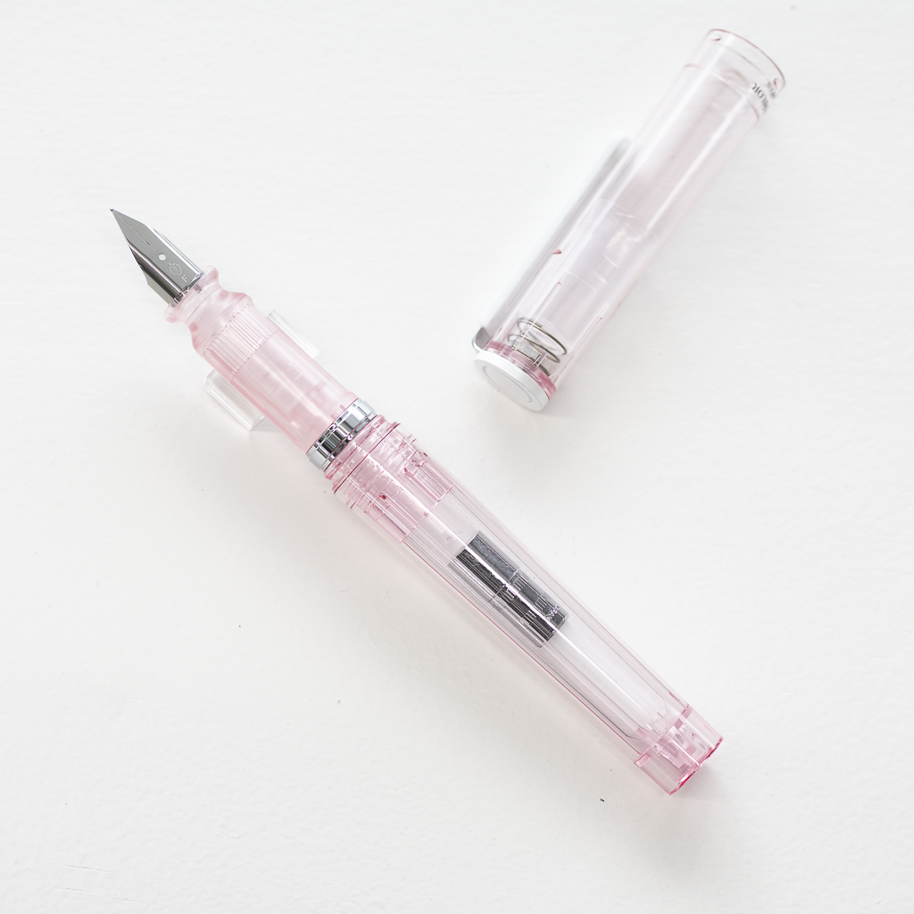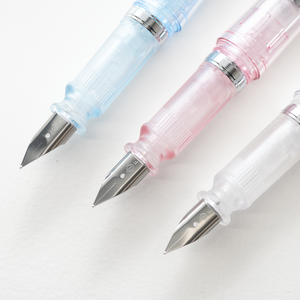 複雑な万年筆の構造に透明色を重ねることで色のグラデーションが生まれ、桜の花びらのような繊細な色合いを演出します。