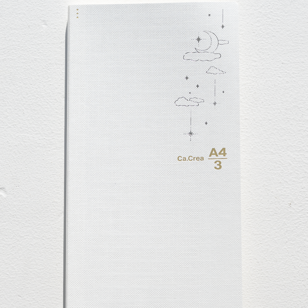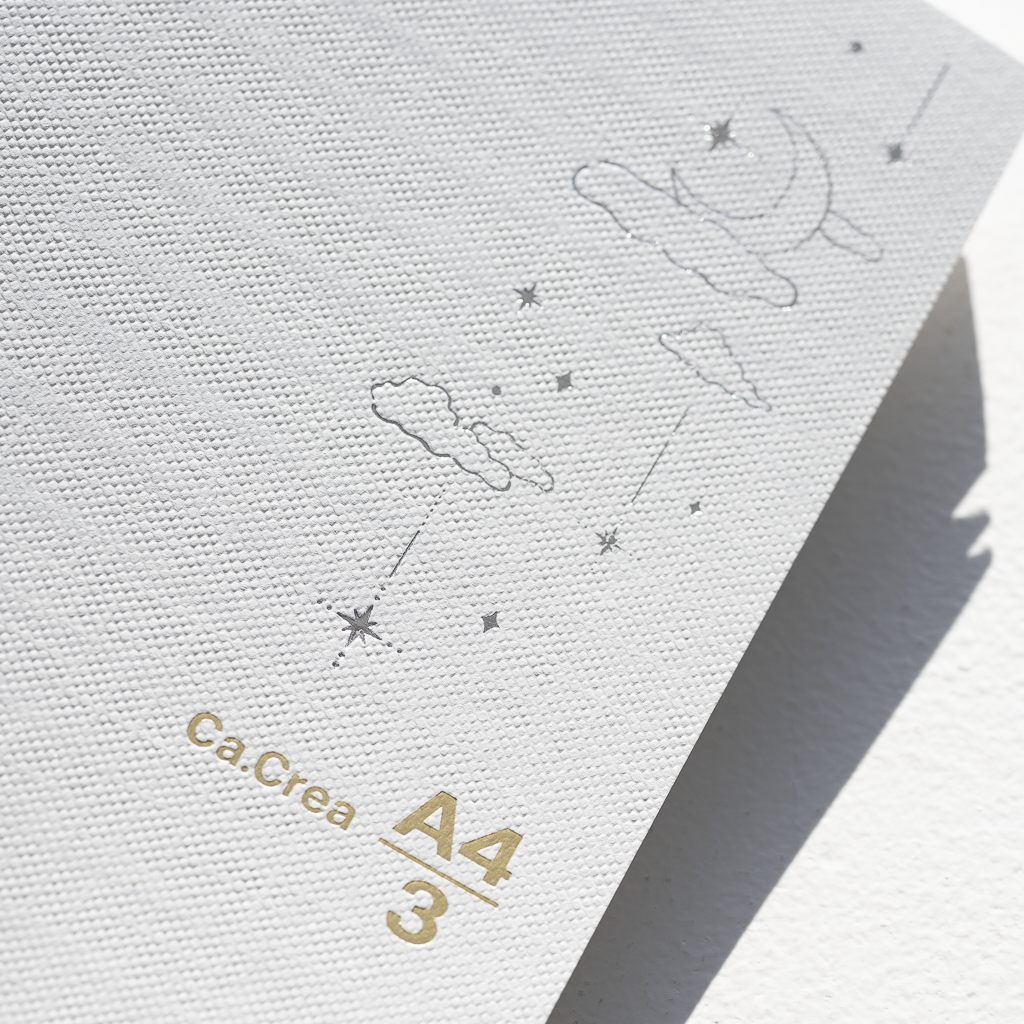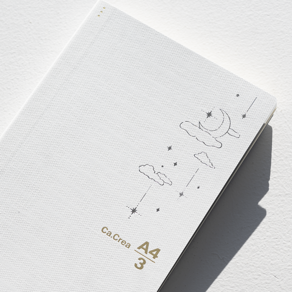 ホワイトの表紙は耐久性に優れた紙クロスを使用し、月と星の箔押しをあしらいました。