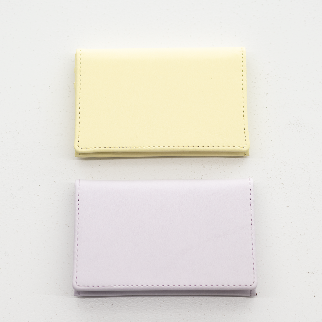 カラフルなソフトレザーで作った二つ折りの名刺入れです。