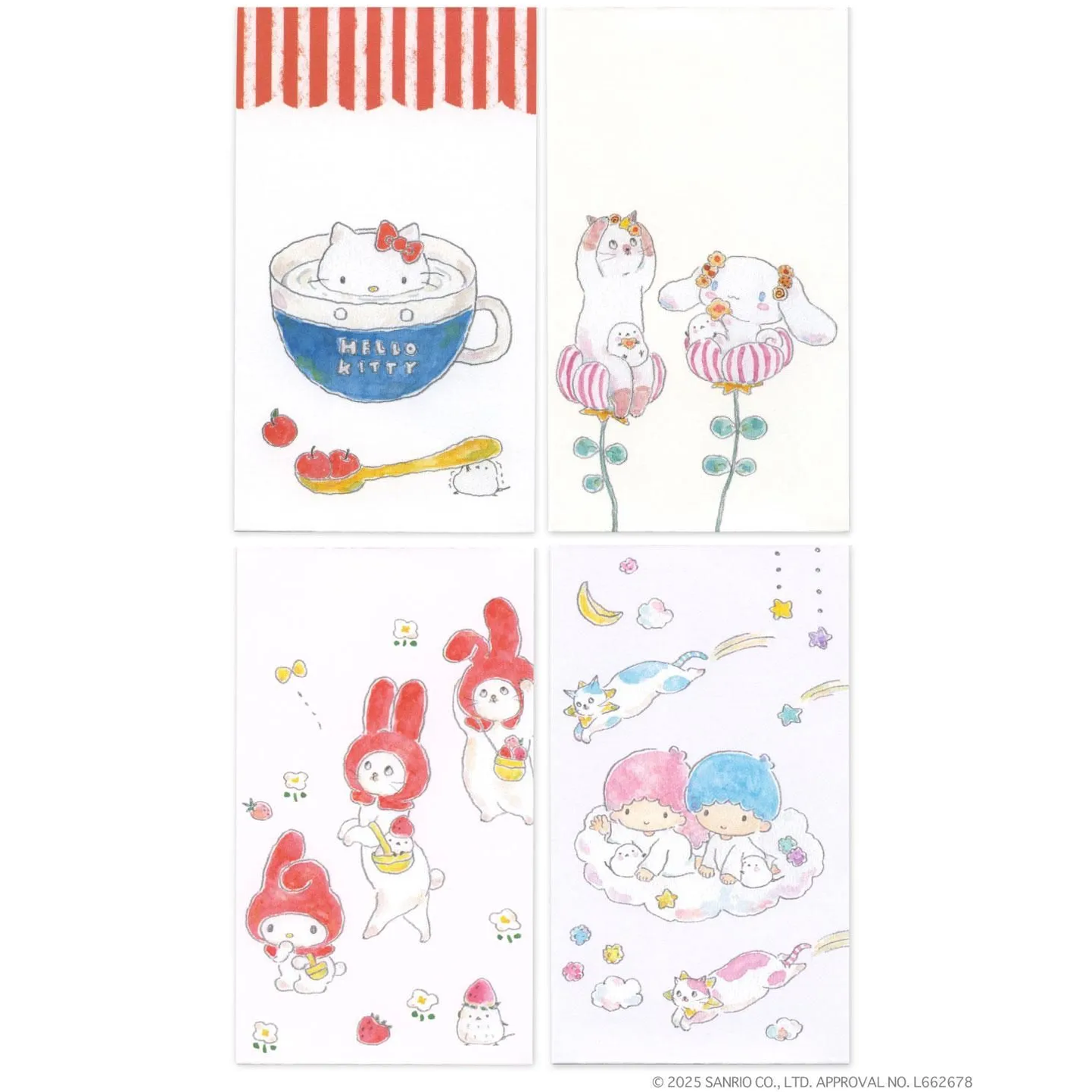 フルーツやクッキーを持ったシナモロールや小さなシマエナガに きゅん!集めたくなるかわいさ、癒される表情や仕草のイラストが詰まっています。
