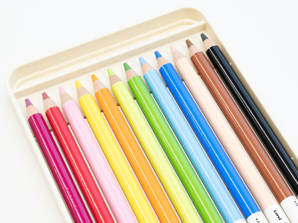 - 12色:あか、きいろ、だいだいいろ、うすももいろ、うすだいだい、あかむらさき、あお、みずいろ、みどり、きみどり、ちゃいろ、くろ