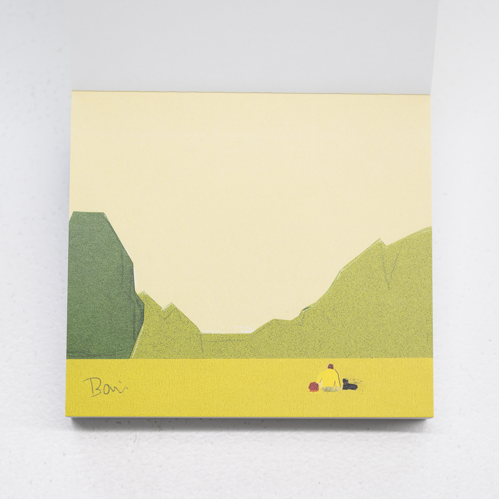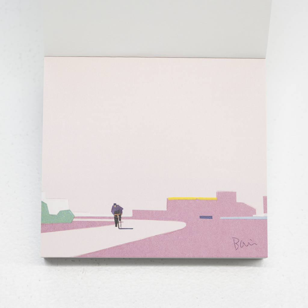 コラージュで表現された美しい風景を楽しめる、坂内拓のおしゃれなブロックメモ。