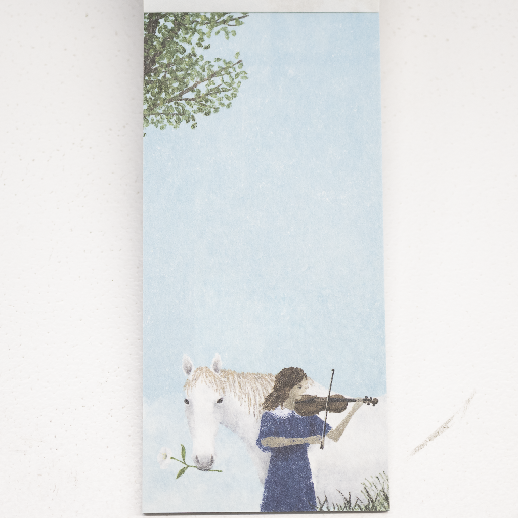 素敵な音楽が聴こえてきそうなイラストがメッセージを彩る、日下明の一筆箋。